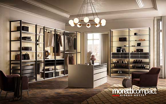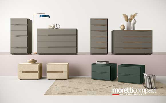 Ogni soluzione presentata in questo sito, e in generale quasi la totalità della produzione Moretti Compact, può essere personalizzata cambiando tipologia dei frontali, variando finiture e colori degli elementi secondo il proprio gusto, cambiando il tipo di maniglia e scegliendo tra numerosi accessori interni...