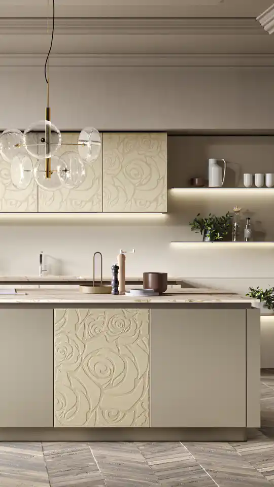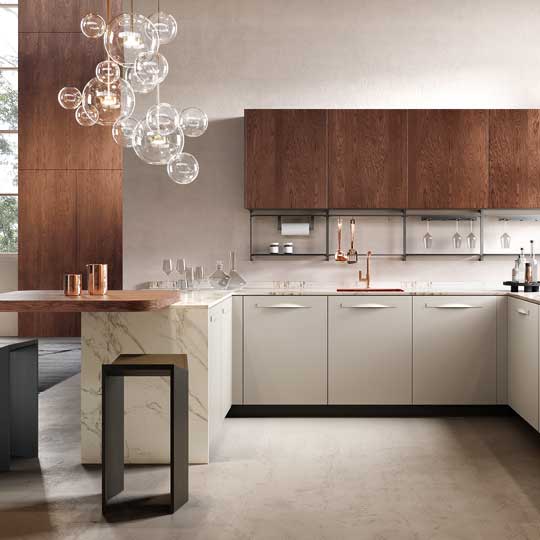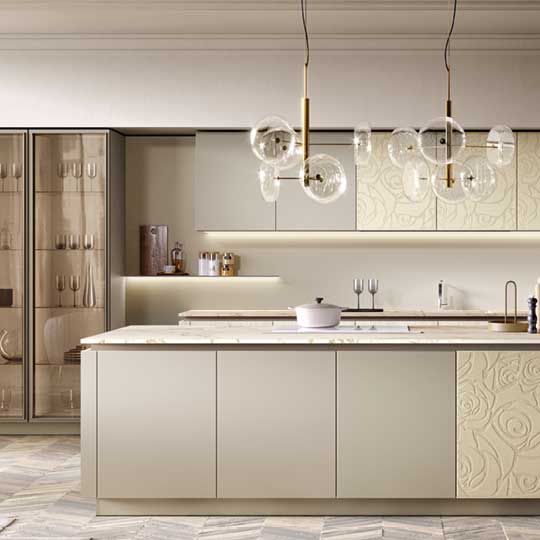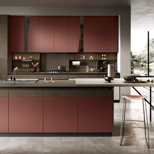 Le cucine sono personalizzabili mediante una vasta gamma di finiture, un’ampia modularità e diverse tipologie di maniglia integrata o aperture a gola, il tutto pensato per poter progettare gli arredi rispecchiando le idee del cliente e quindi soddisfare tutte le aspettative.
